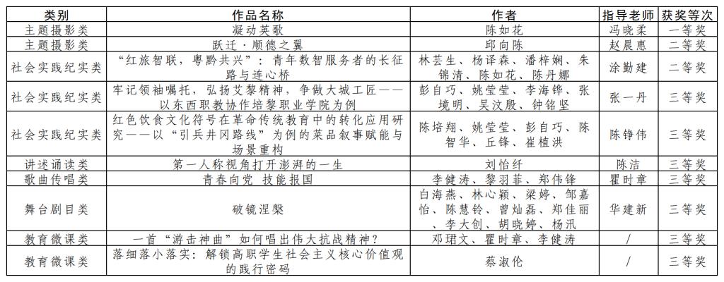 本次活动涵盖社会实践纪实类、讲述诵读类、歌曲传唱类、主题摄影类、公益广告类、舞台剧目类、教育微课类共七大类目。我校师生积极参与多个类别的比赛,凭借扎实的功底、创新的思维和真挚的情感表达,在众多参赛作品中脱颖而出。