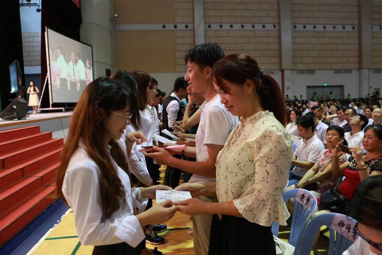 在教师代表、家长代表访谈视频中,我们看到有师长致以朋友般真诚的祝福,有慷慨激昂的鼓励,还有家长对学校信心满满,寄予厚望。看完访谈视频,现场每一个人都心存感念。毕业生代表怀着一颗感激的心,向教师代表献上师恩卡、向家长代表献上亲恩卡。