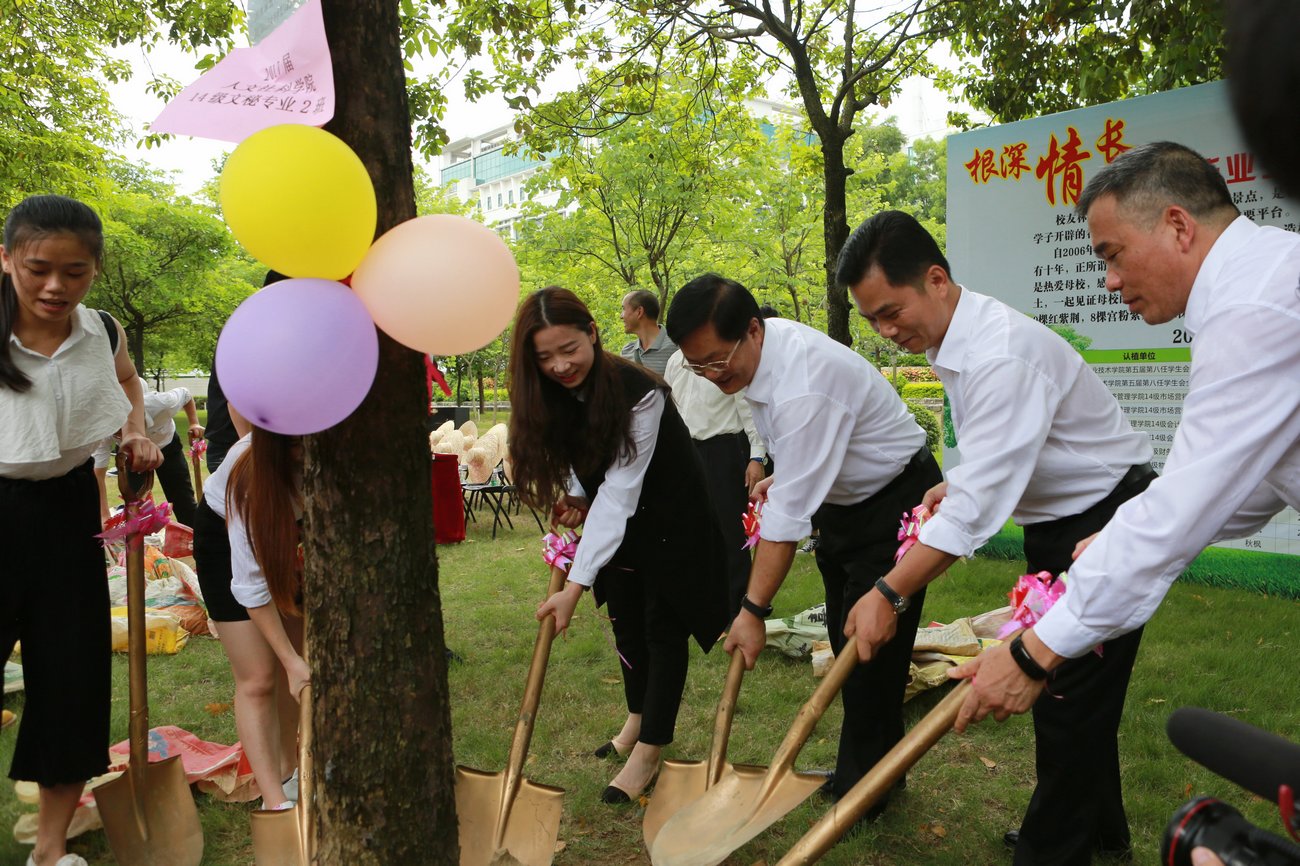 学校领导、教师和毕业生们齐齐来到校友林植树,种下对学校深深的祝福和情谊。