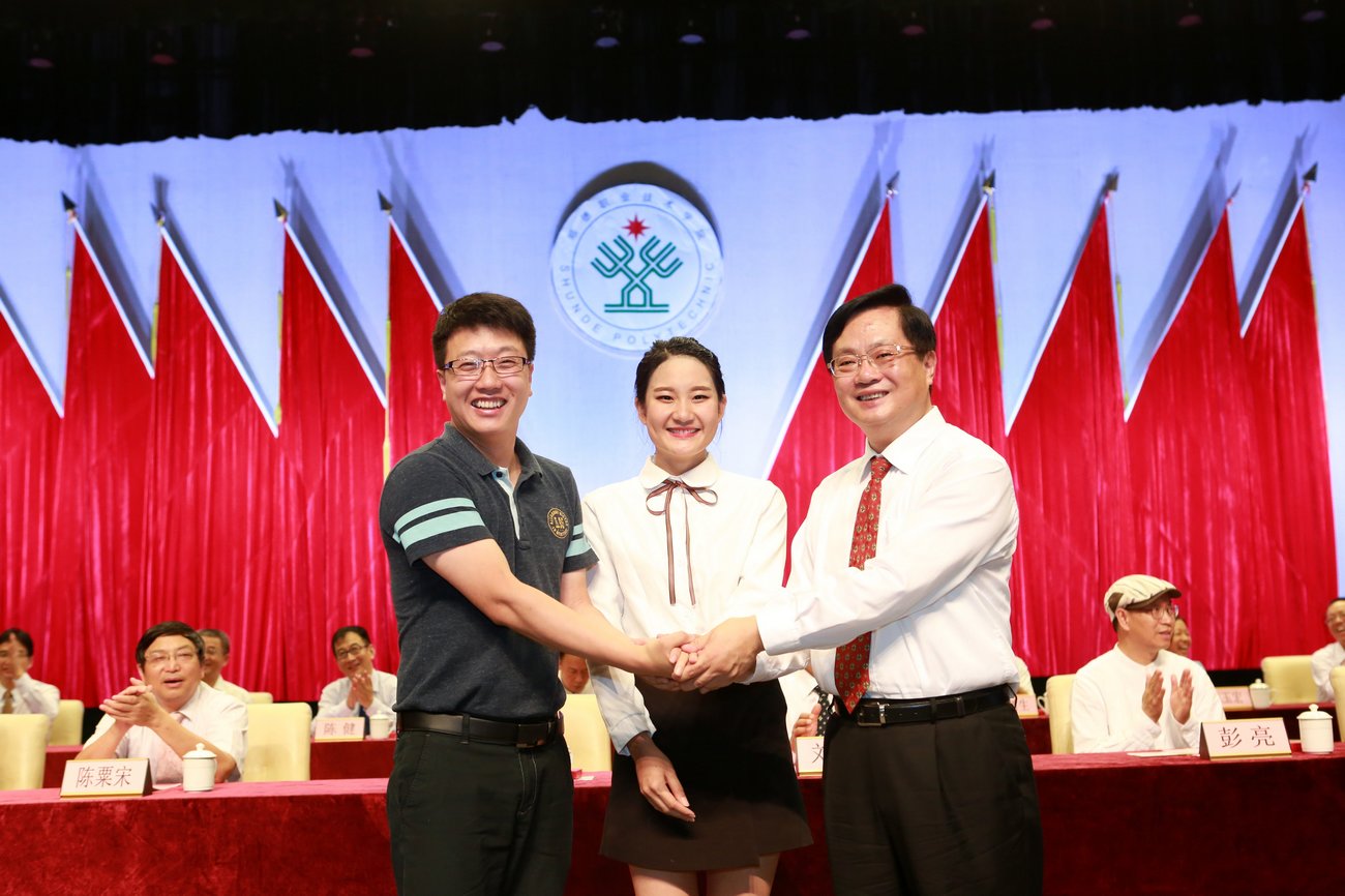 在雷鸣般的掌声中,优秀毕业生代表从学校领导和国家级教学名师手中分别接过毕业证书和荣誉奖状。